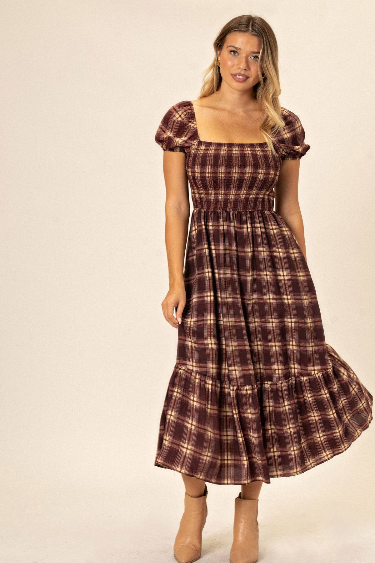 - Smocked bodice provides a flexible, comfortable fit that contours to your shape