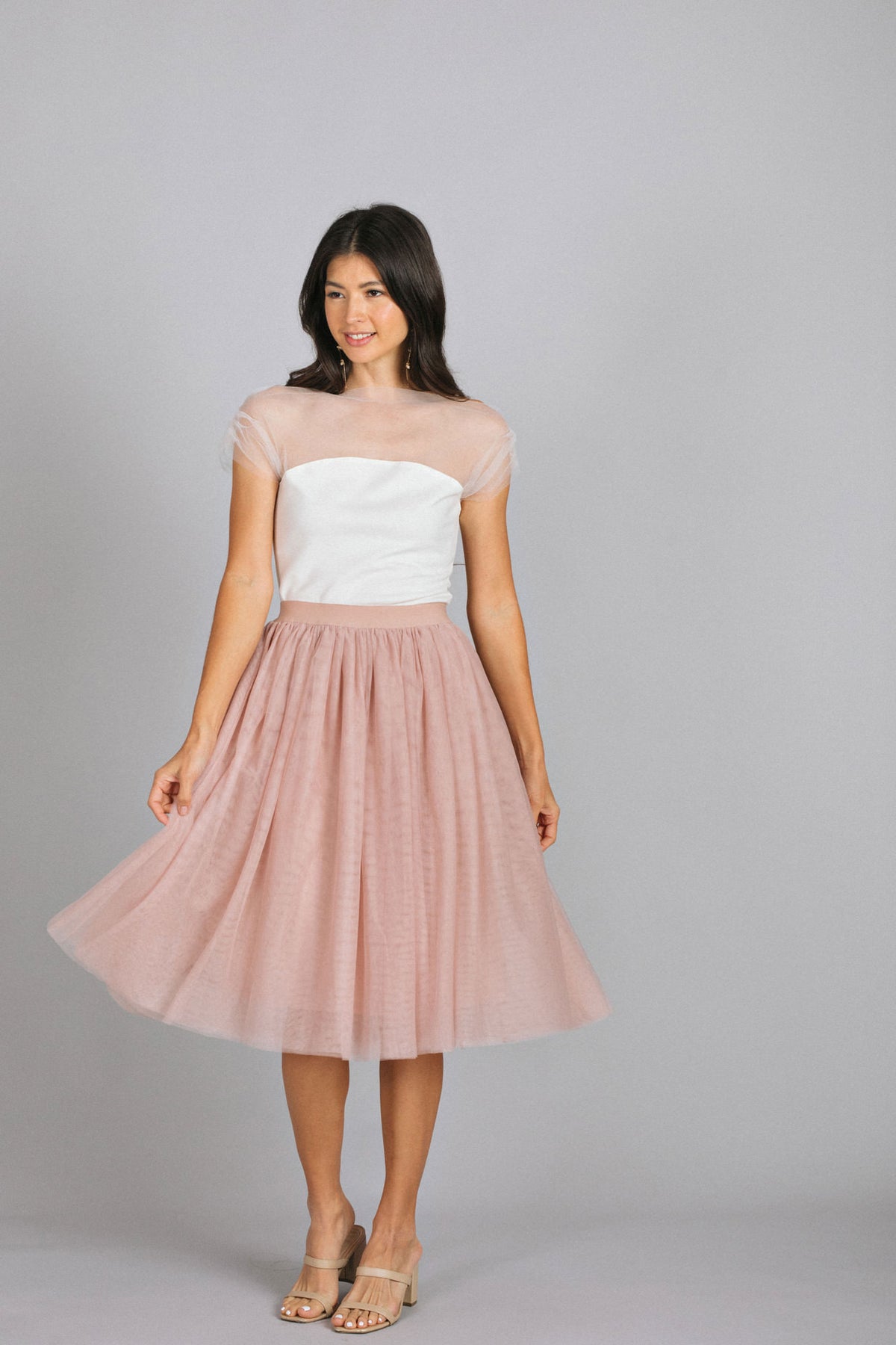• Crafted from a mixed media fabric combining soft knit and delicate mesh for a stylish, textured contrast