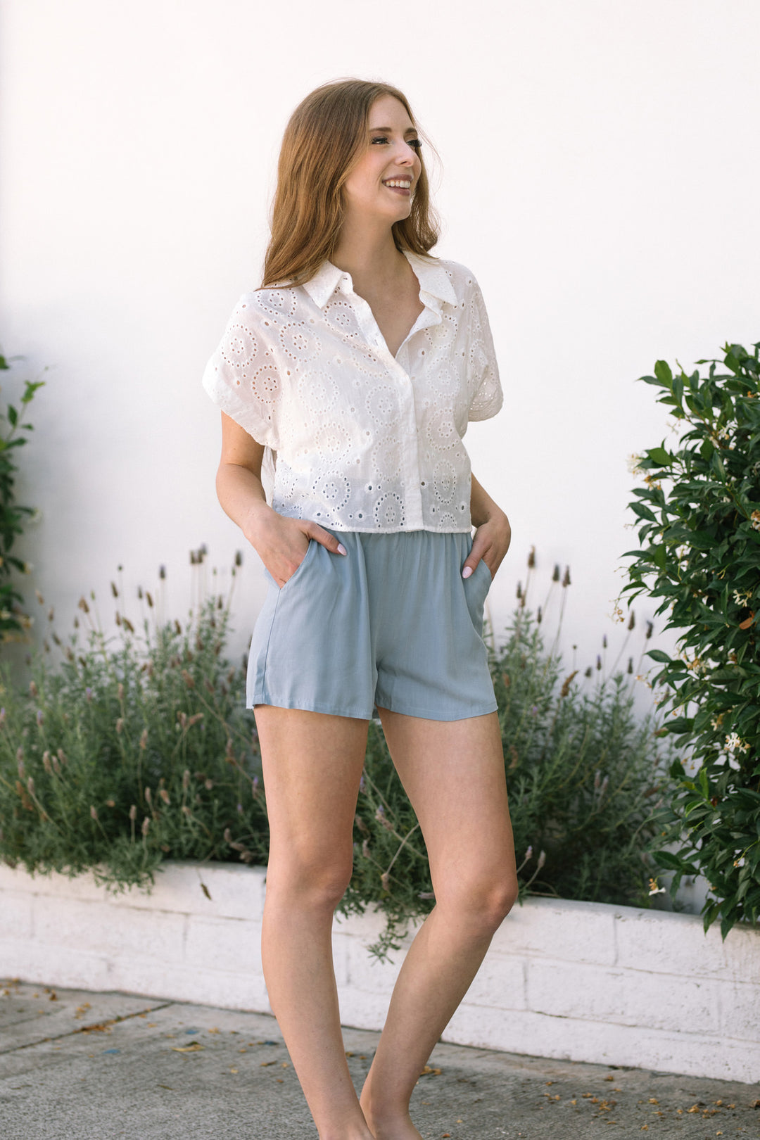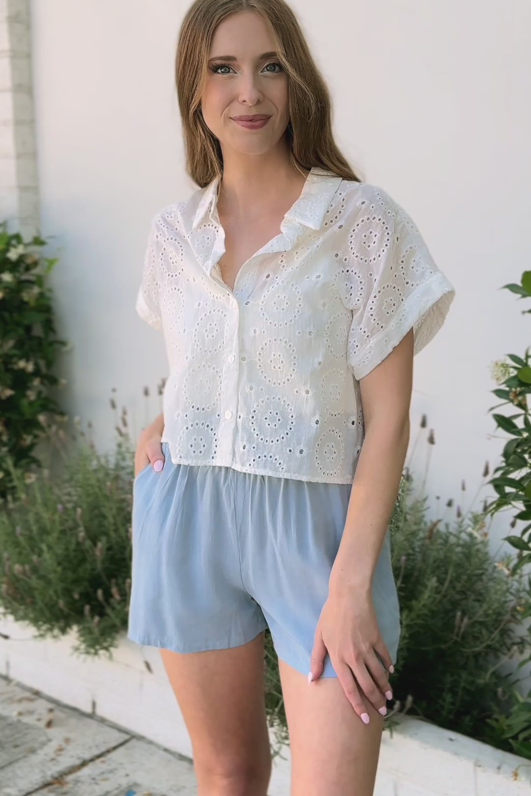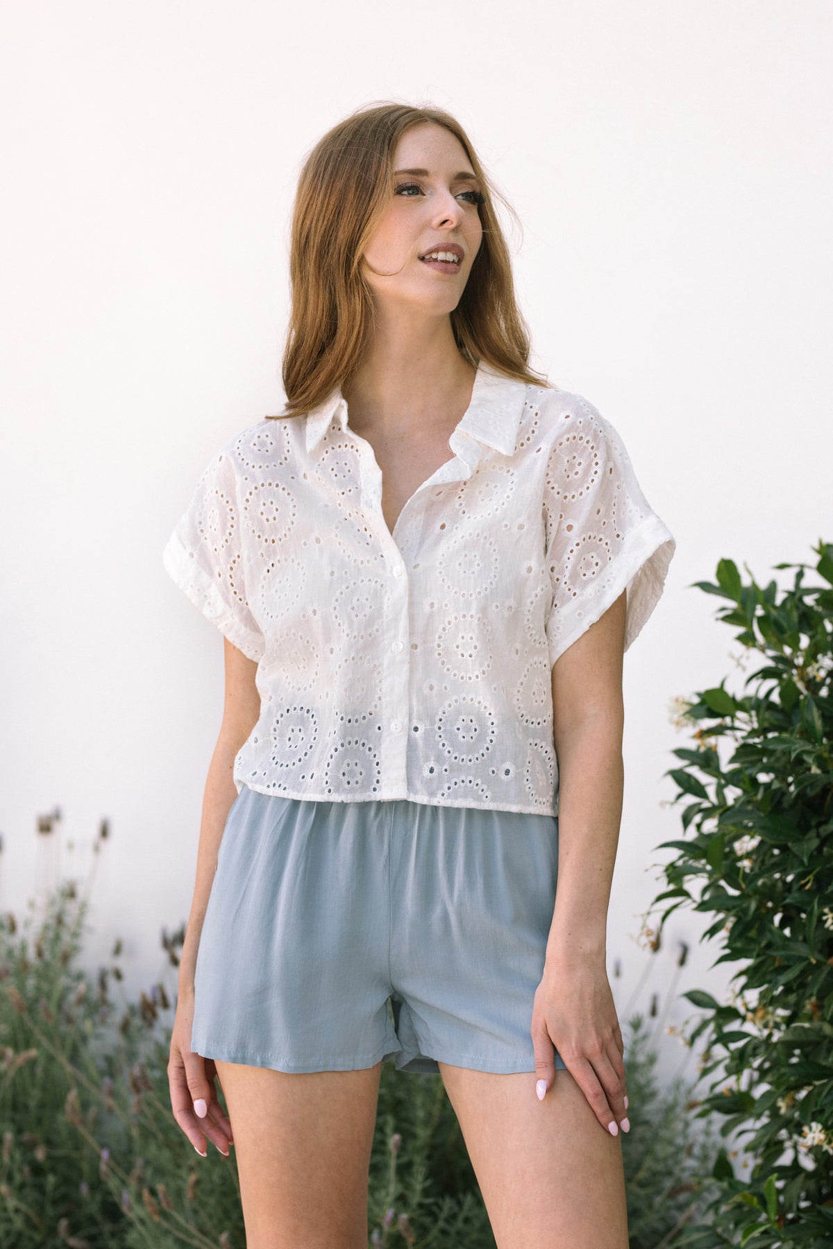- Breathable eyelet fabric – lightweight with delicate texture