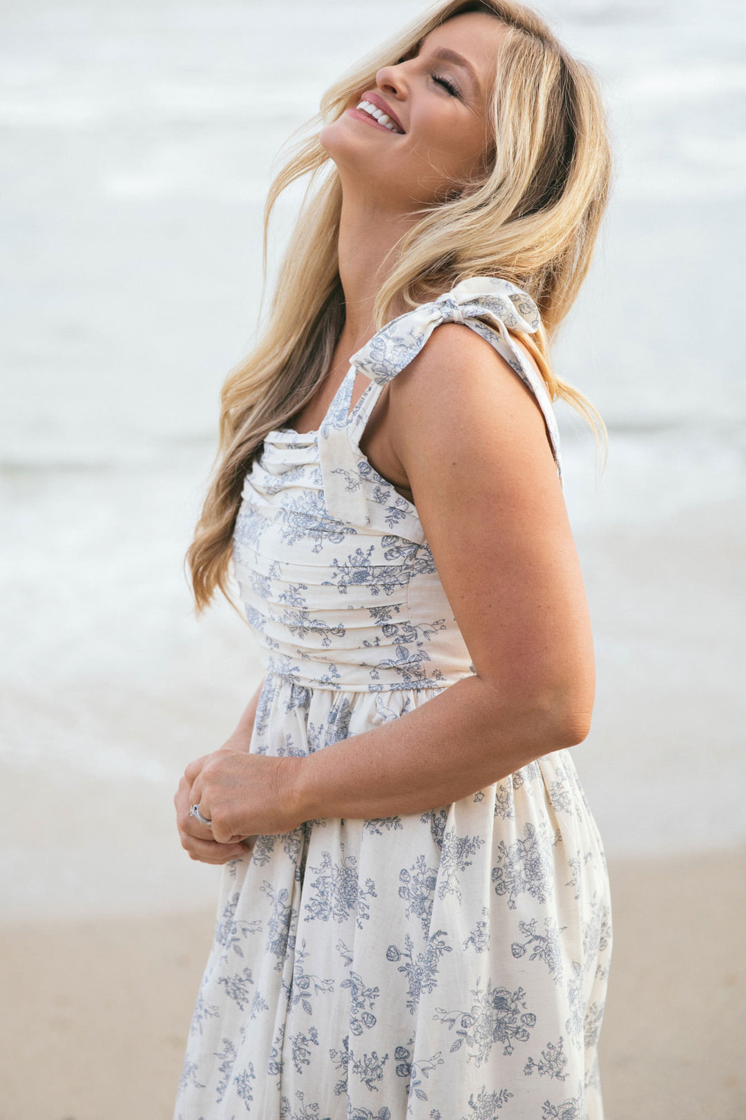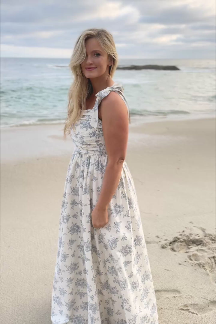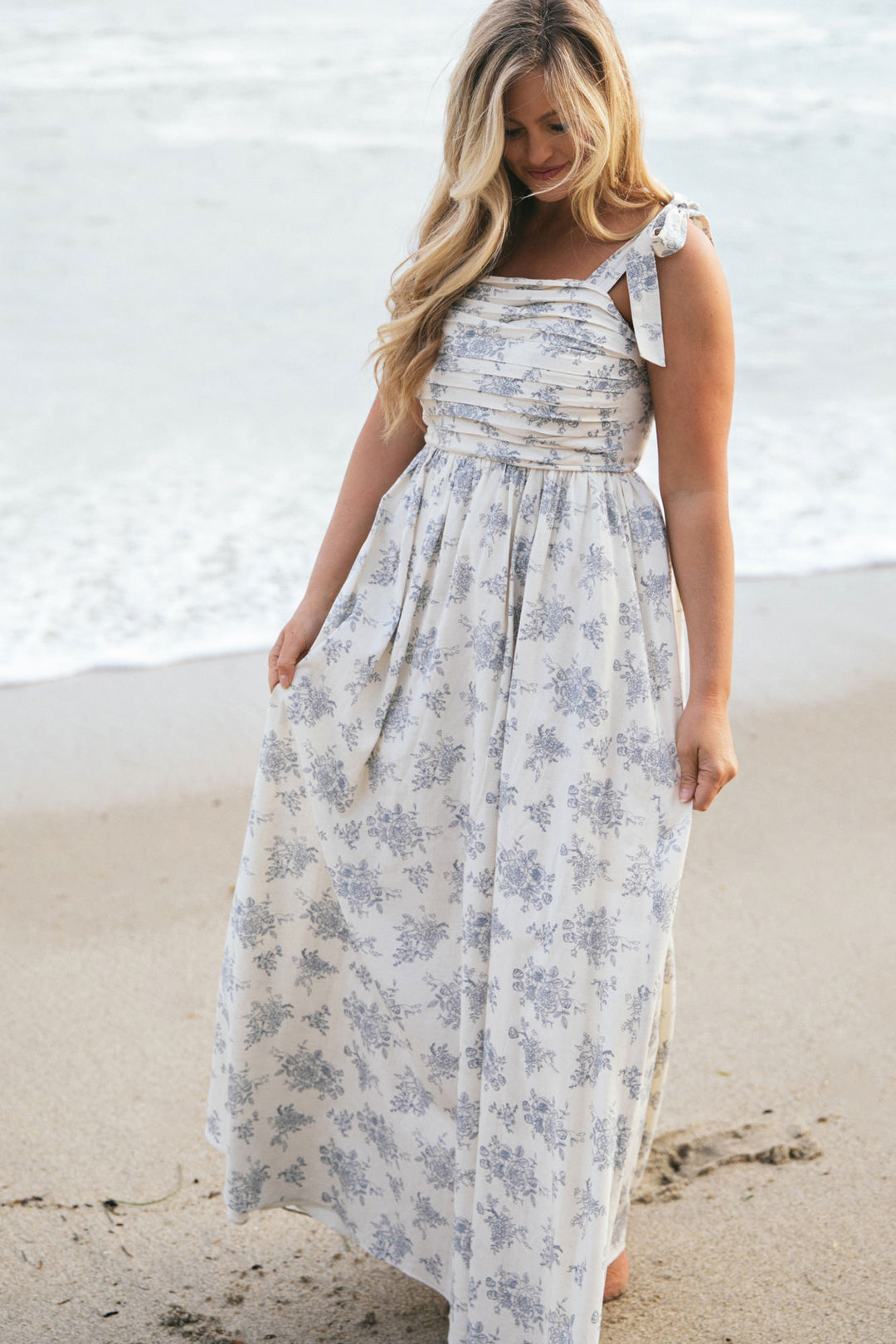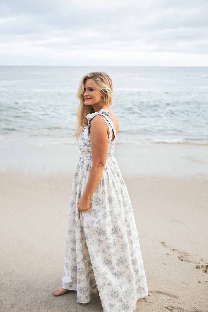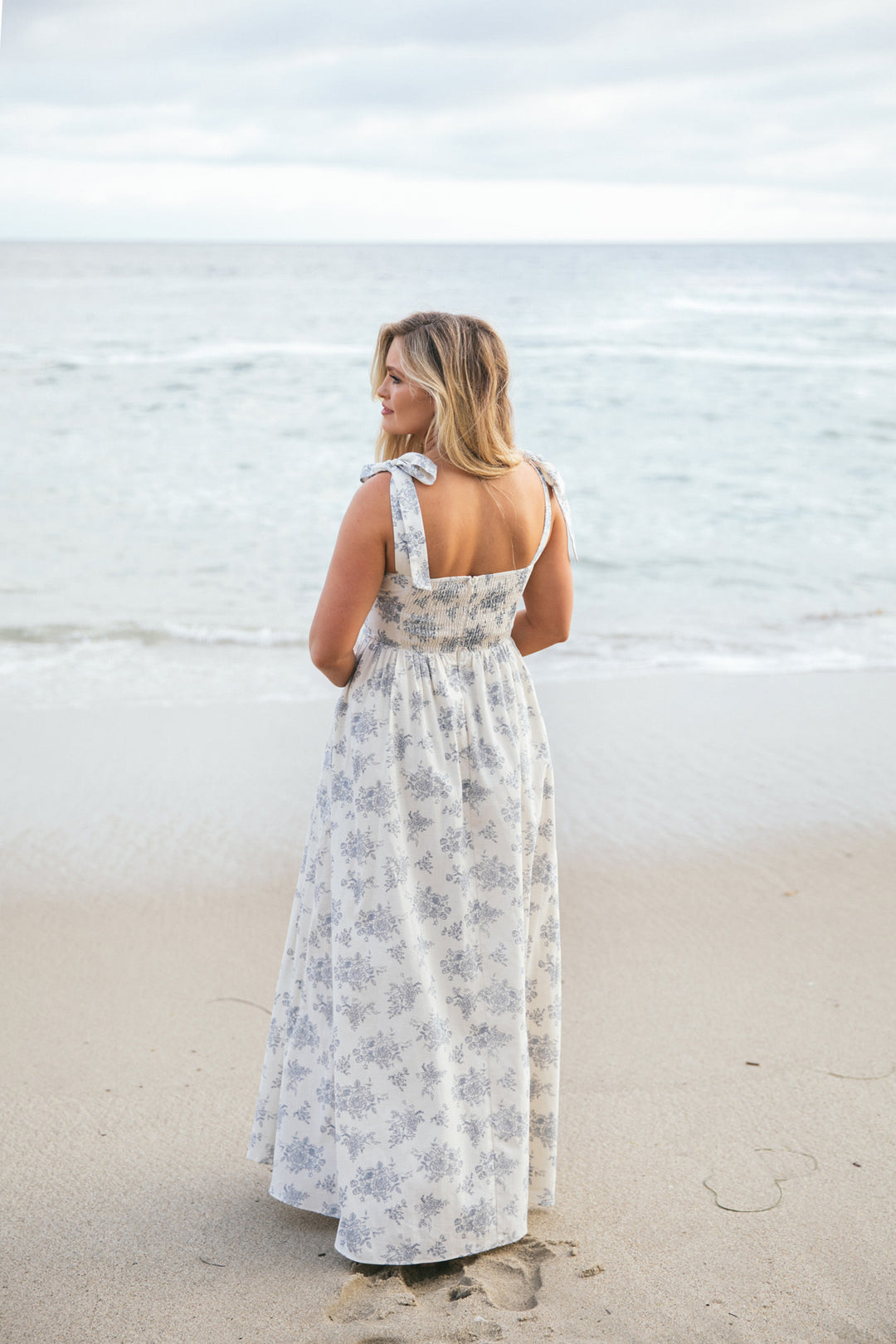 • Adjustable ribbon-tie shoulders for a customizable fit
